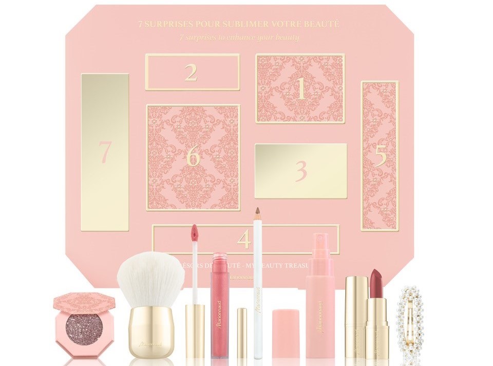 Kalendár MY BEAUTY TREASURES (17,90 eur) obsahuje 7 pokladov, ktoré sa o vás postarajú a každý deň odhalia vašu krásu. Objavte: Body & Home sprej, perleťový očný tieň, matný rúž, lesk na pery, kajalovú ceruzku, kabuki štetec a elegantnú, perlovými ozdobami zdobenú sponu do vlasov. Kalendár je ukrytý v elegantnej škatuľke so siedmimi predtlačenými priehradkami, ktoré spájajú funkčnosť a eleganciu. Každý deň v týždni odhalí nové prekvapenie, ktoré spríjemní vaše okamihy krásy.