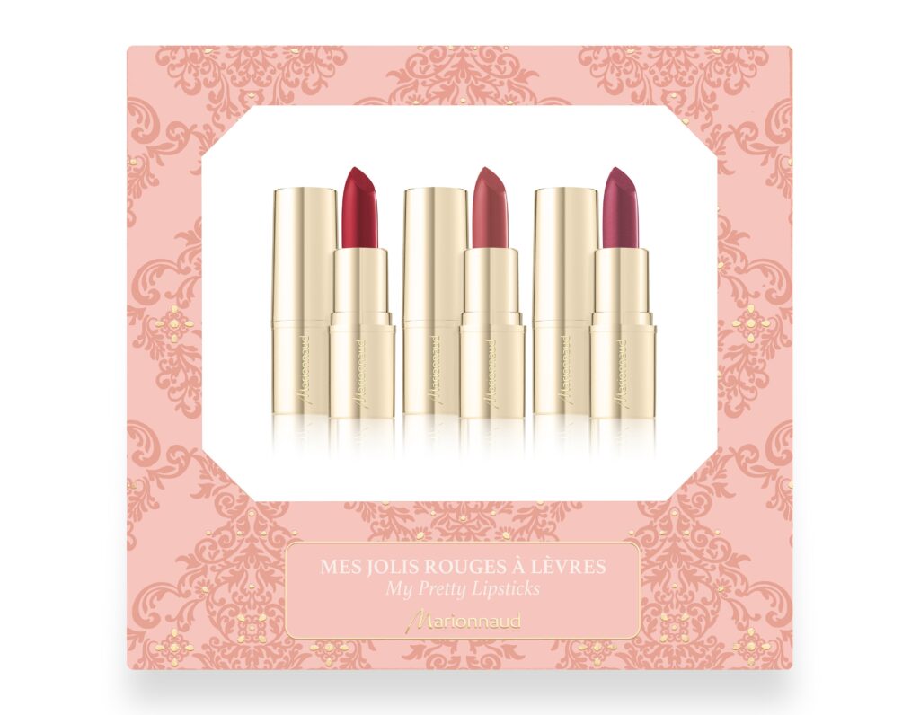 MY PRETTY LIPSTICKS (9,99 eur) je trio rúžov, ktoré dodá každému make-upu nádych elegancie, glamouru alebo romantiky: Matný, farbivo intenzívny nude rúž pre decentný, ale rafinovaný vzhľad. Lesklý rúž v odtieni slivky, ktorý s jemným ružovo-fialovým tónom vytvára žiarivý výsledok. Saténovo červený rúž, ideálny pre glamour a majestátny vzhľad. Univerzálny set sa hodí na každú príležitosť. Je výborný na dokonalé doplnenie vášho make-upu kedykoľvek
