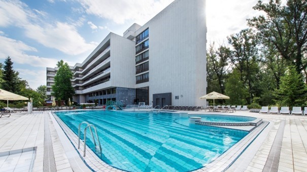 Luxusný 5-hviezdičkový hotel Thermia Palace ponúka vonkajší termálny relaxačný bazén s teplotou vody 32 až 34 °C. Vďaka termálnej vode je v celoročnej prevádzke. V chladných mesiacoch je dlažba v okolí bazéna vyhrievaná. Plávanie v termálnej vode má veľa prospešných účinkov nielen na zdravie tela, ale podporuje tiež uvoľnenie a psychickú pohodu.