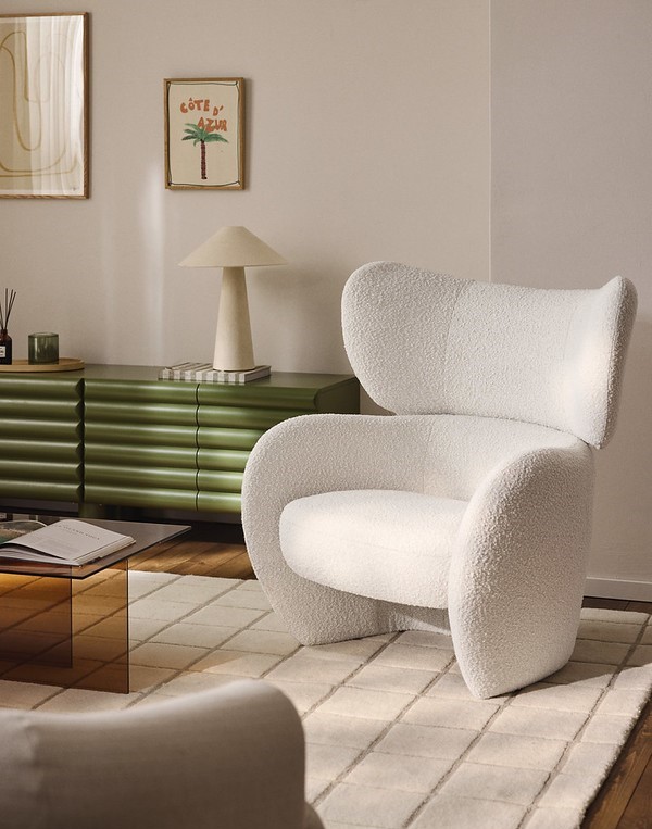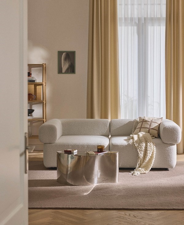 V rámci kolekcie Westwing zachytáva túto náladu modulárna pohovka Wolke (oblak) svojou plávajúcou siluetou pripomínajúcou oblak – dizajnom, ktorý premieňa jemnosť do tvaru aj pocitu. Tento zmysel pre nežnú jasnosť pokračuje aj v ďalších kúskoch Westwing Collection, ktoré atmosféru Cloud Dancer interpretujú aj prostredníctvom objemu, textúry a rafinovanej jednoduchosti: od mäkko čalúnenej siluety postele Tayla, ktorá prináša do spálne pokojný výraz, cez sochársku jemnosť lampy Keani, ktorej skladaná forma pripomína nenápadné zvlnenie vzduchu; od čistých, súčasných línií stoličky Calan, kde sa jednoduchosť mení na charakter, až po harmonický základ stola Sahra, kde zaoblené objemy a hladké povrchy vytvárajú vyrovnanú kompozíciu. Posteľná bielizeň Thany ponúka najintímnejšiu interpretáciu tejto palety – hmatateľnú mäkkosť, ktorá mení spálňu na pokojný, svetlom presvetlený úkryt.