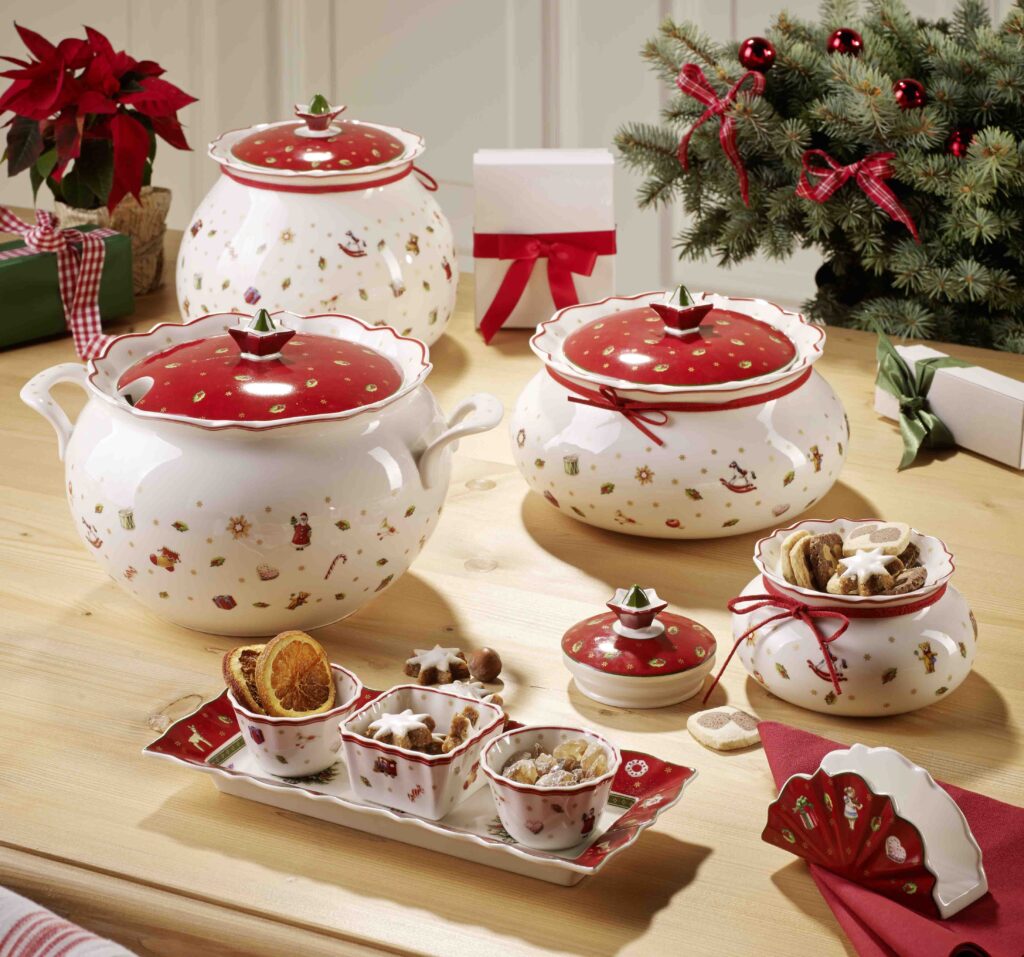 Neváhajte preniesť tento štýl aj na svoj slávnostný vianočný stôl. Porcelánové súpravy posiate malými obrázkami vianočných postáv a symbolov, ako je cezmína a pod., sú ideálne na štedrovečernú večeru. Porcelán s vianočnými motívmi – napríklad od Villeroy & Boch alebo X-mass – je k dispozícii v širokom výbere v obchodných domoch XXXLutz.